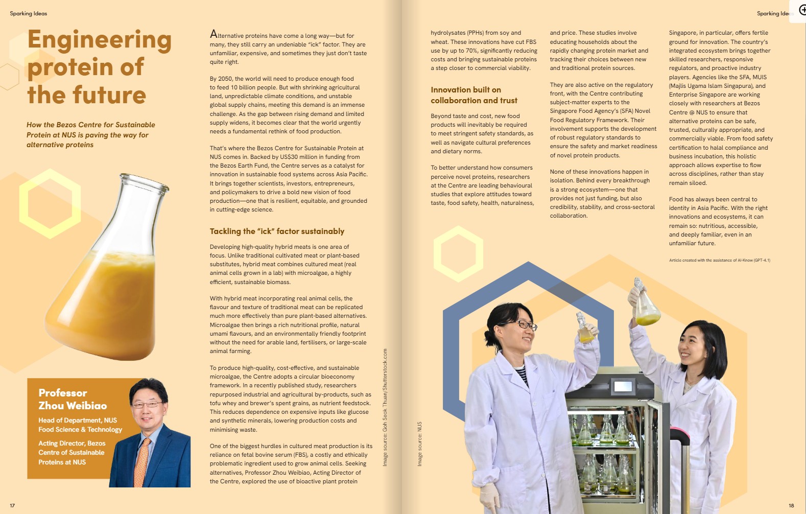 The Bezos Centre for Sustainable Protein at the National University of Singapore (NUS) was established to advance research in alternative proteins and lead commercialisation efforts across the region. With a US$30 million grant from the Bezos Earth Fund, the Centre will spearhead interdisciplinary research and innovation to meet the nutritional needs of the growing global population.